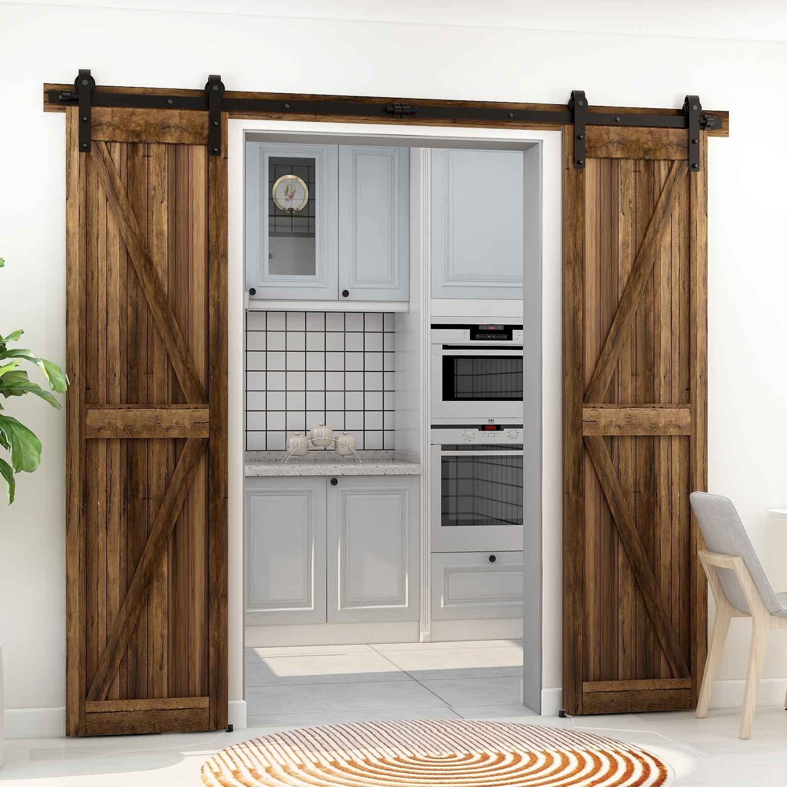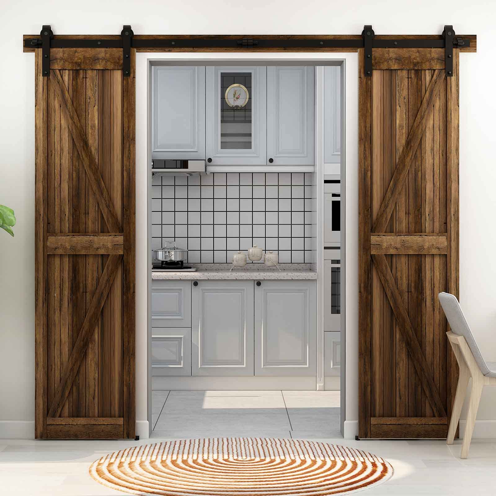 - Schiebe-Doppeltür-Hardware-Kit 11FT/3.3M(Verwendbare maximale Türbreite ist2.75FT/0.825M)