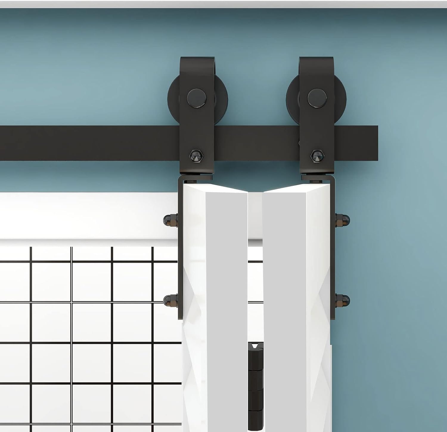TSMST 100cm/3.3ft Klapptür Schiebetürsystem Komplett-Set, Platzsparende Scheunentür Spur Set für 2 Türen, Glatt und Ruhig (keine Tür)