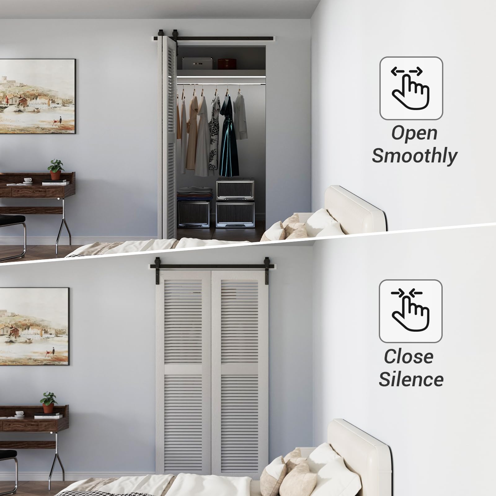 - ❤️Easy to Install: TSMST - Bi-Folding Barn Door Hardware Kit is an outstanding barn door hardware kit that is easy to install. It makes the most of limited space has the ability to slide effortlessly on its track.