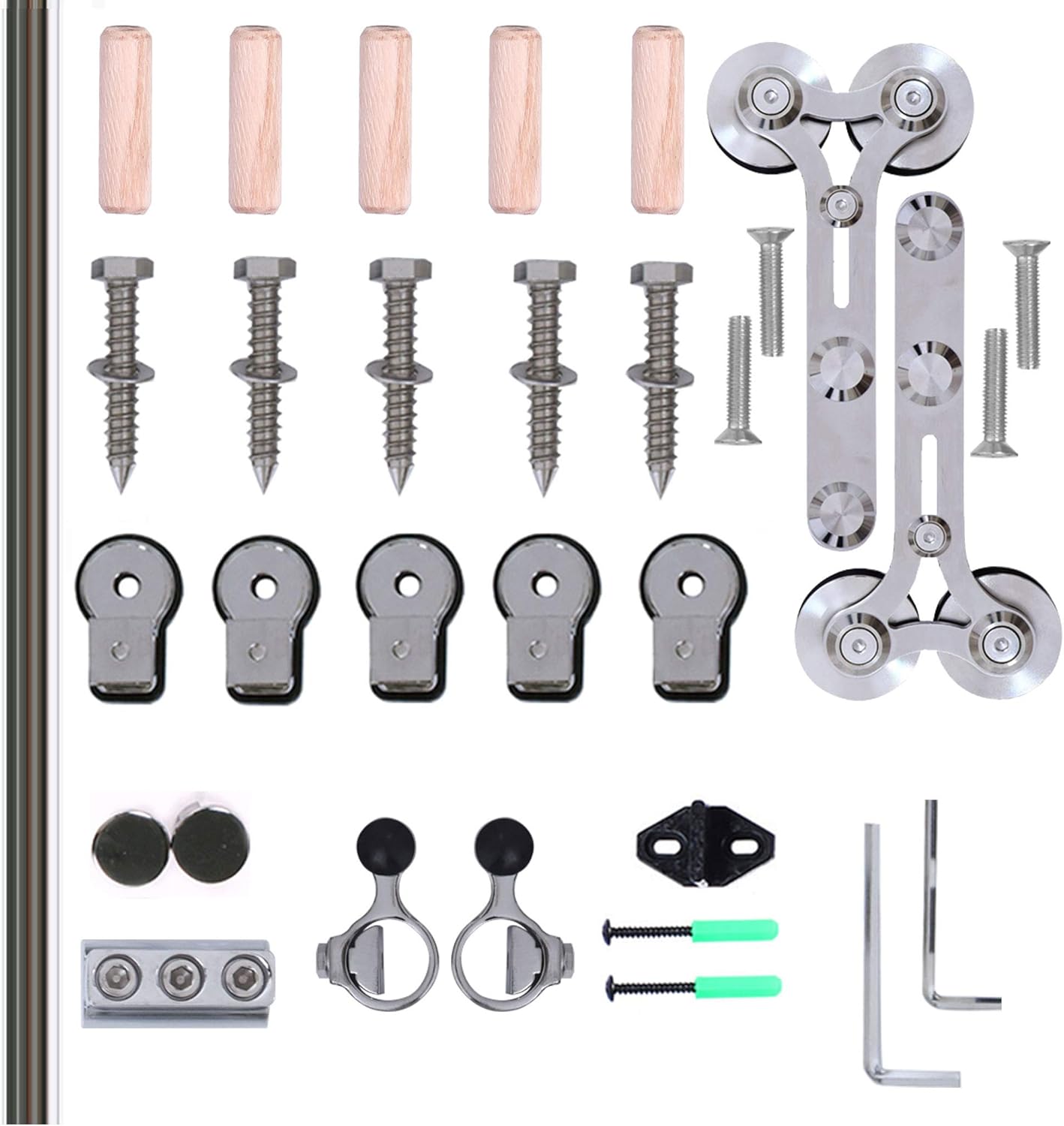 - ✅ 【Artikelgröße】 153CM/5FT Schiebetür-Hardware-Kit, (geeignet Max. Türbreite beträgt 76.5CM) Schienendurchmesser aus Edelstahl: 25mm Dicke: 2mm