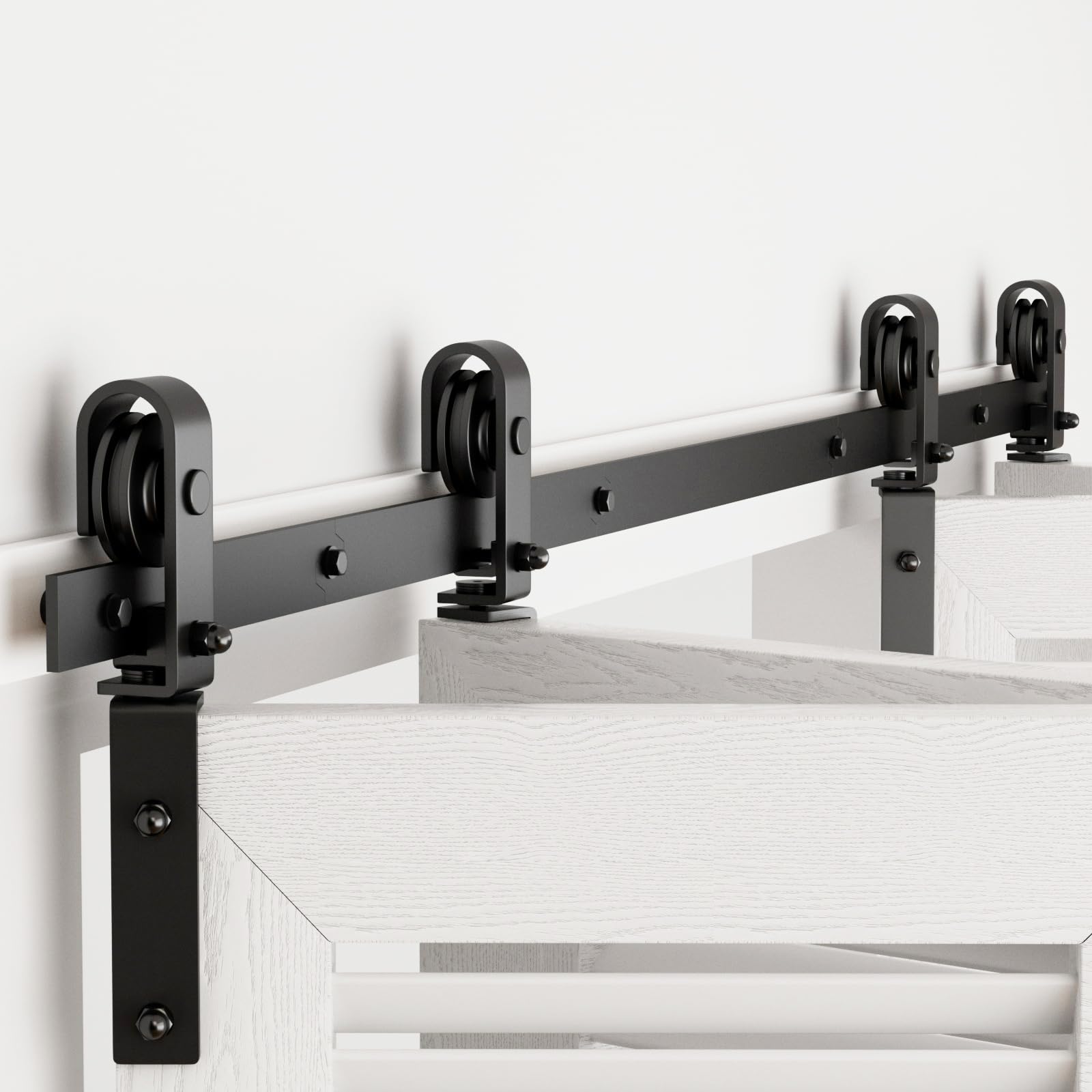 - ❤️Right Choice to Your Door: Track length 6FT=72"; Fits each door width: 17"-17.5"; Fits door thickness: 1 3/16"- 1 3/4"; Door weight capacity: 220lbs; The distance from top of the door to the ceiling wall is 6 5/16".