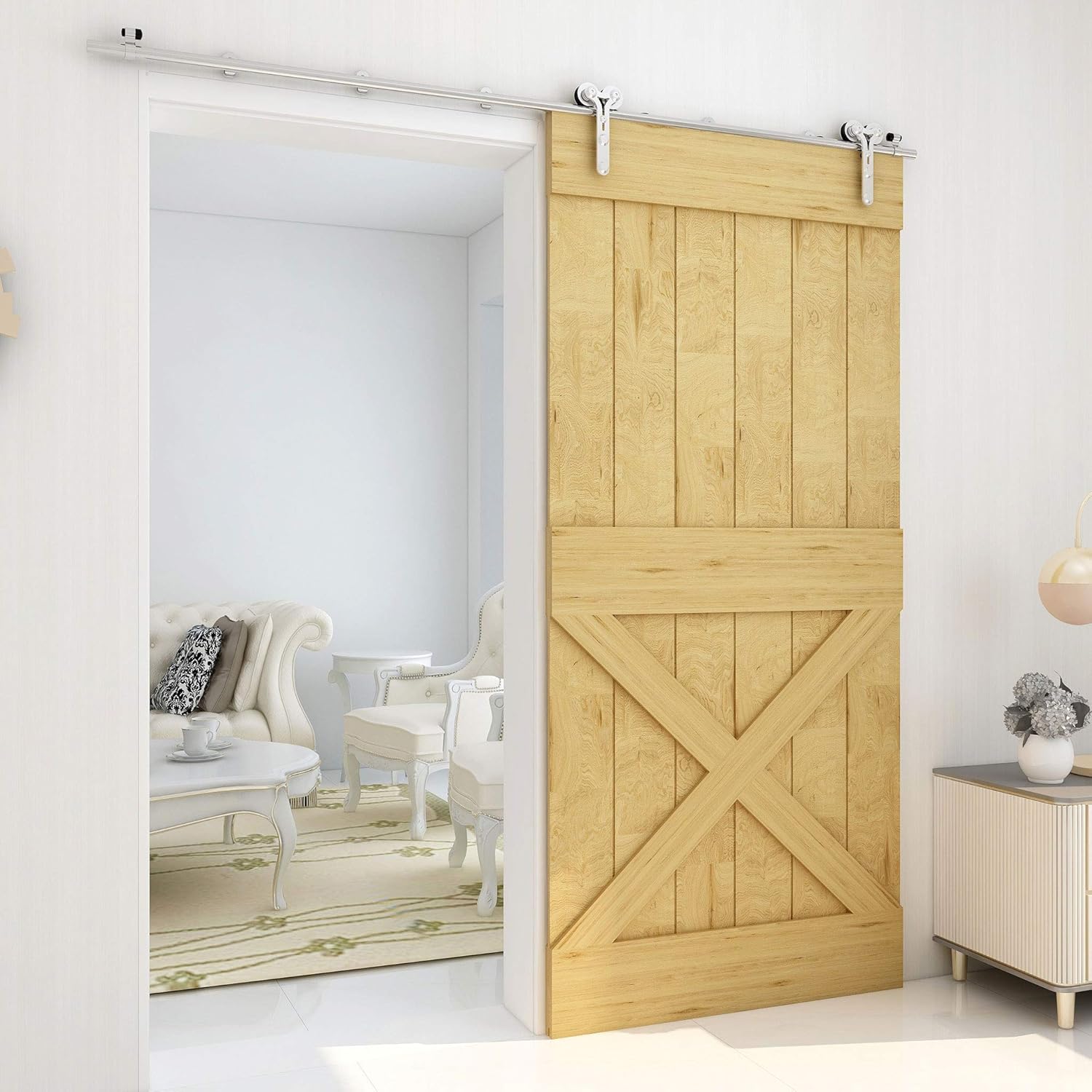 - ✅ 【Artikelgröße】 183CM/6FT Schiebetür-Hardware-Kit, (geeignet Max. Türbreite beträgt 91.5CM) Schienendurchmesser aus Edelstahl: 25mm Dicke: 2mm