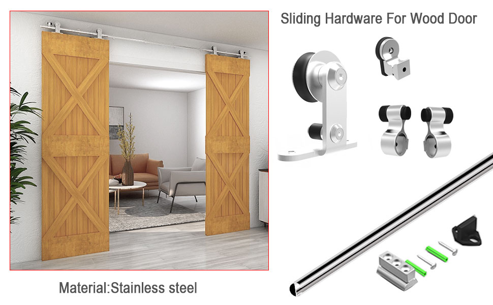 - ✅【Item Size】200CM/6.6FT Sliding Door Hardware Kit, (Suitable Max door width is 1.65FT / 50CM), Rail Diameter 2.5cm, Thickness: 0.55cm, *Suitable for double doors*