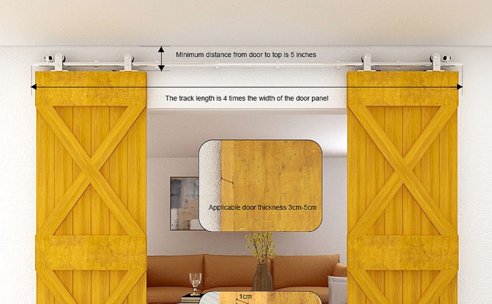 (like your door width is 24''/61cm, You will need 96‘’/244cm hardware Kit )