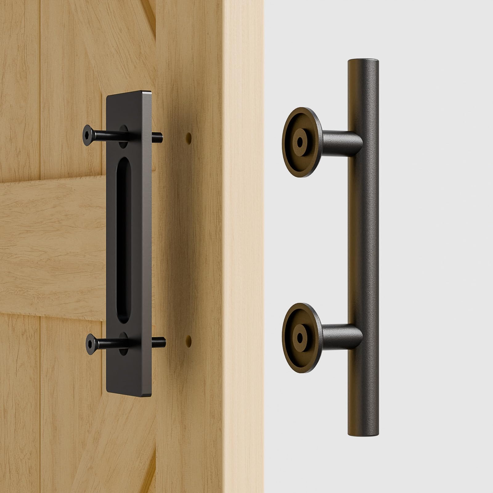 - ✅【ITEM】: Sliding barn door handle made of carbon steel, is made of 100% Carbon Steel with a corrosion resistant black powder finish for durability;