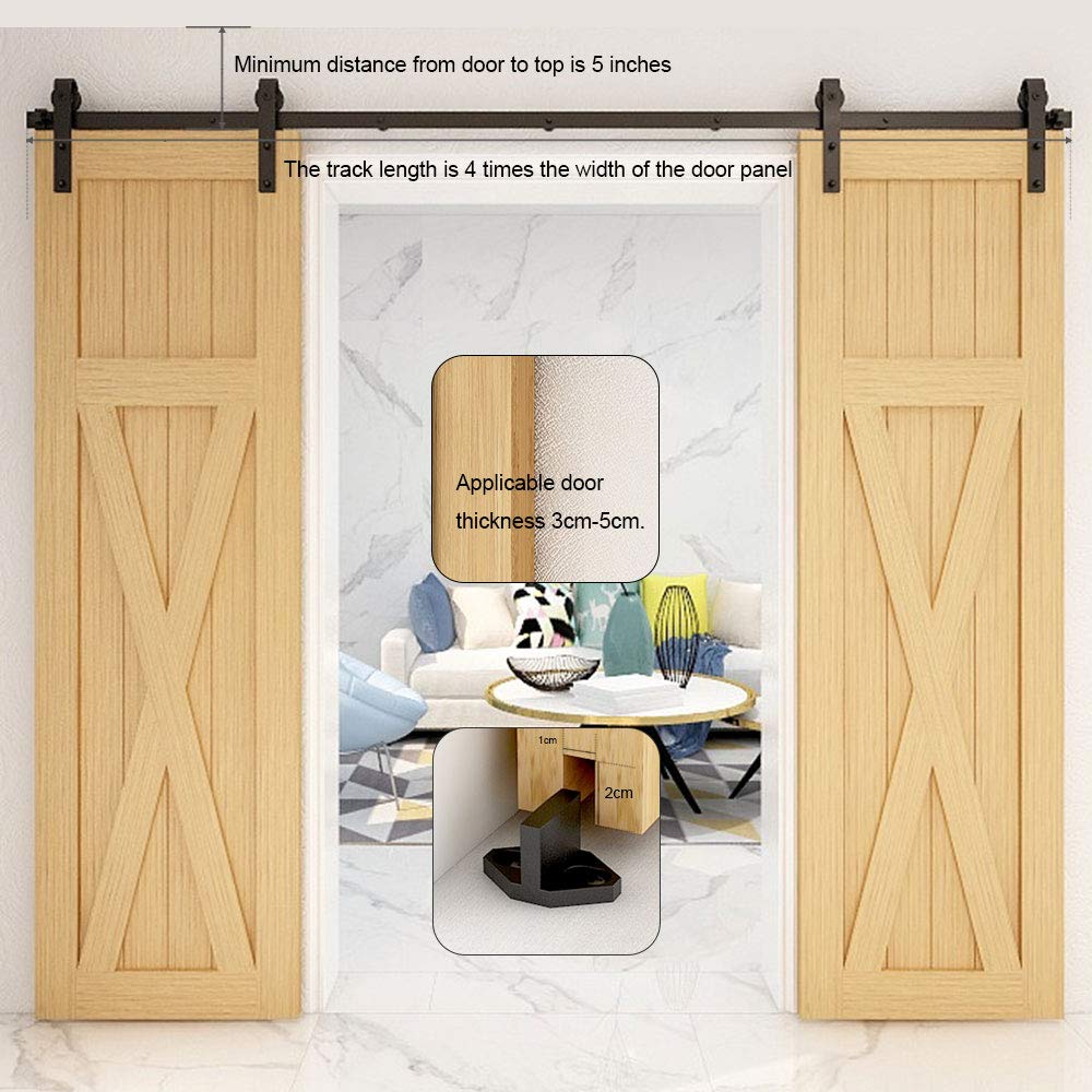 (like your door width is 24''/61cm, You will need 96‘’/244cm hardware Kit )