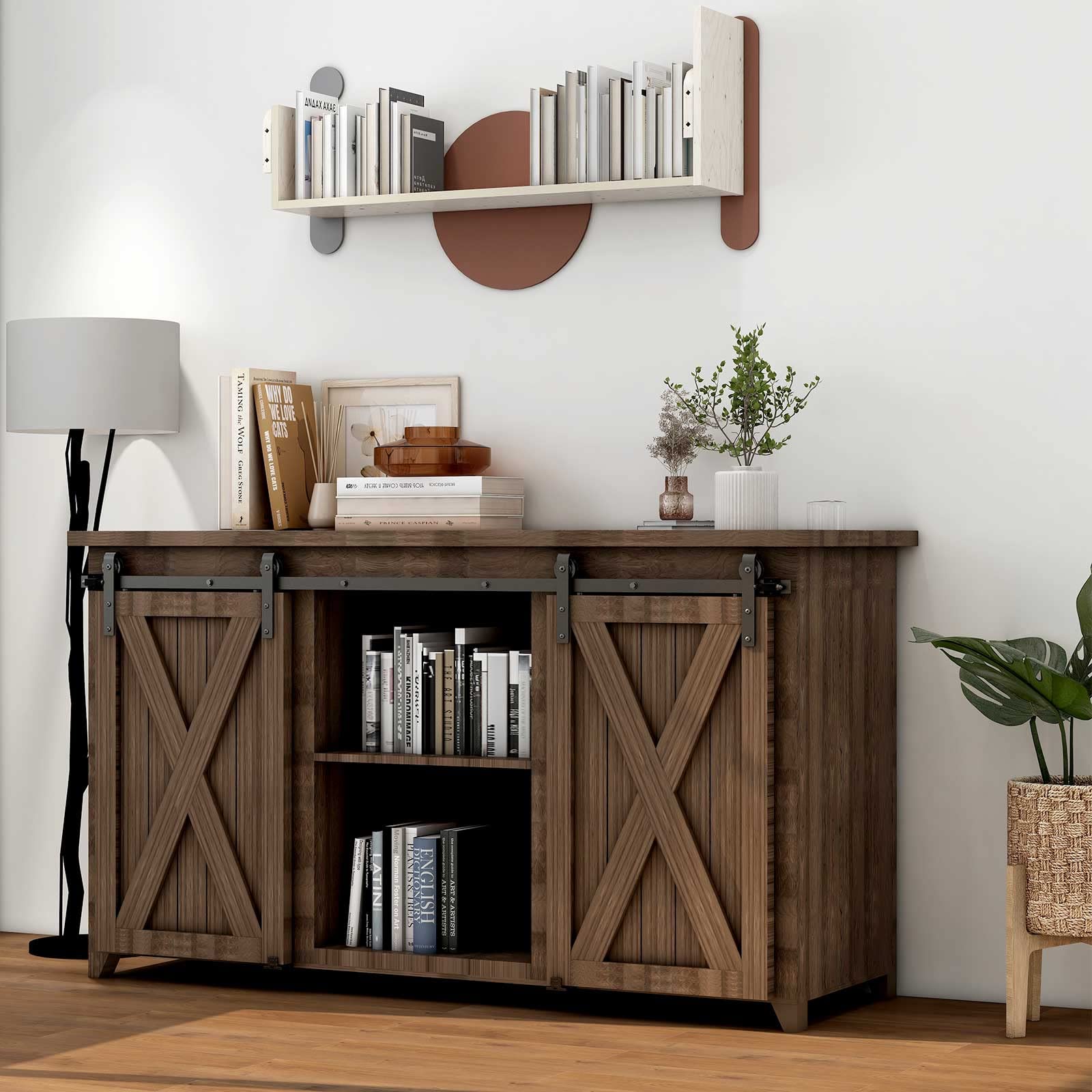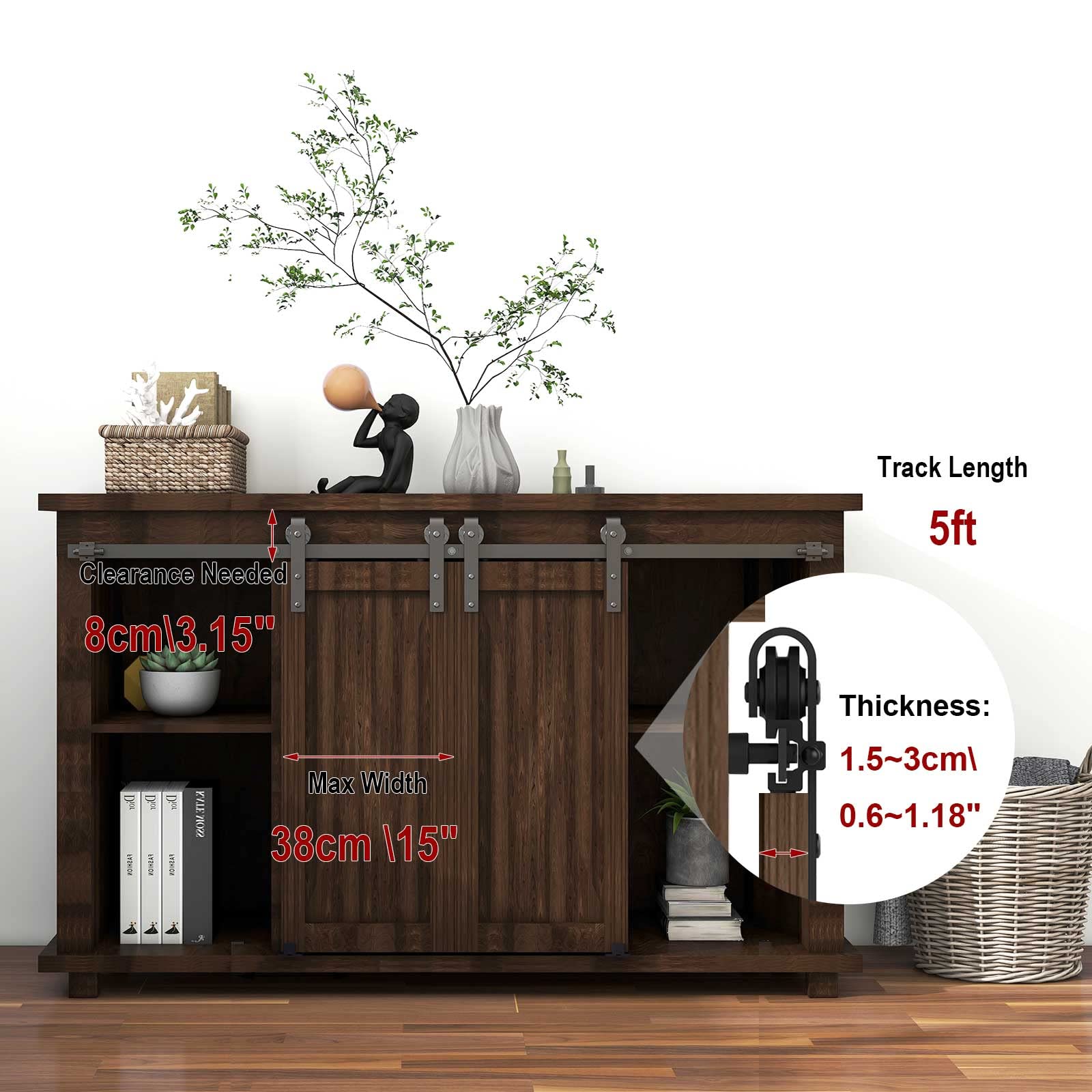 TSMST 5FT/152CM Cabinet Mini Sliding Barn Door Hardware Kit, Double Barn Door Track Set, Apply for Storage Window TV Stand,J Shape(No Cabinet)