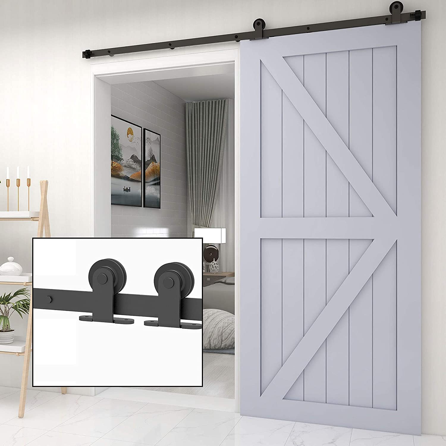 The aluminum track with materials, American Style Carbon Steel Roller Hanger, matte black finish prevent the kit from scratching. Rail thickness 0.24 inches, provide super load-bearing capacity, maximum weight capacity: 330 lbs.