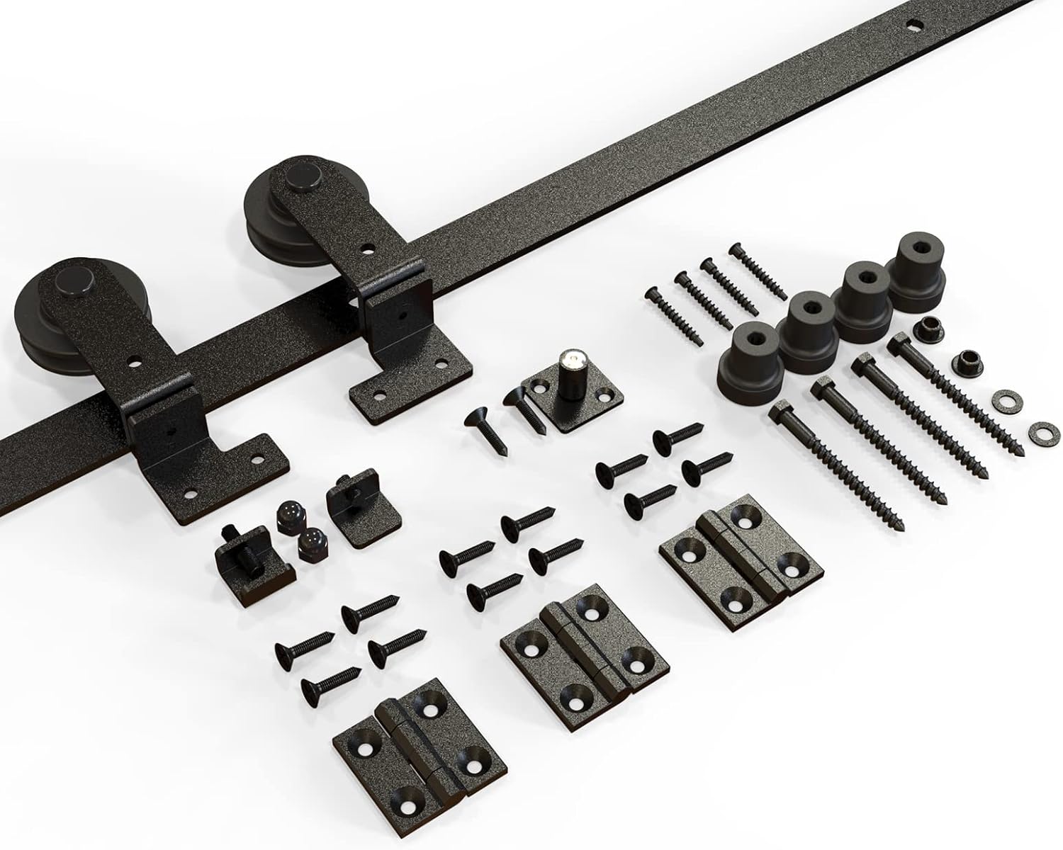- [IM PAKET ENTHALTEN]: Spleißschiene, 2 T-Rollen, 1 rotierende Welle, 2 Anti-Sprung-Scheiben, 2 Türstopper, 1 Bodenschiene, alle für die Aufhängung der Tür erforderlichen Teile. Beachten Sie, dass es nur Hardware, [TÜR NICHT INBEGRIFFEN] ist.