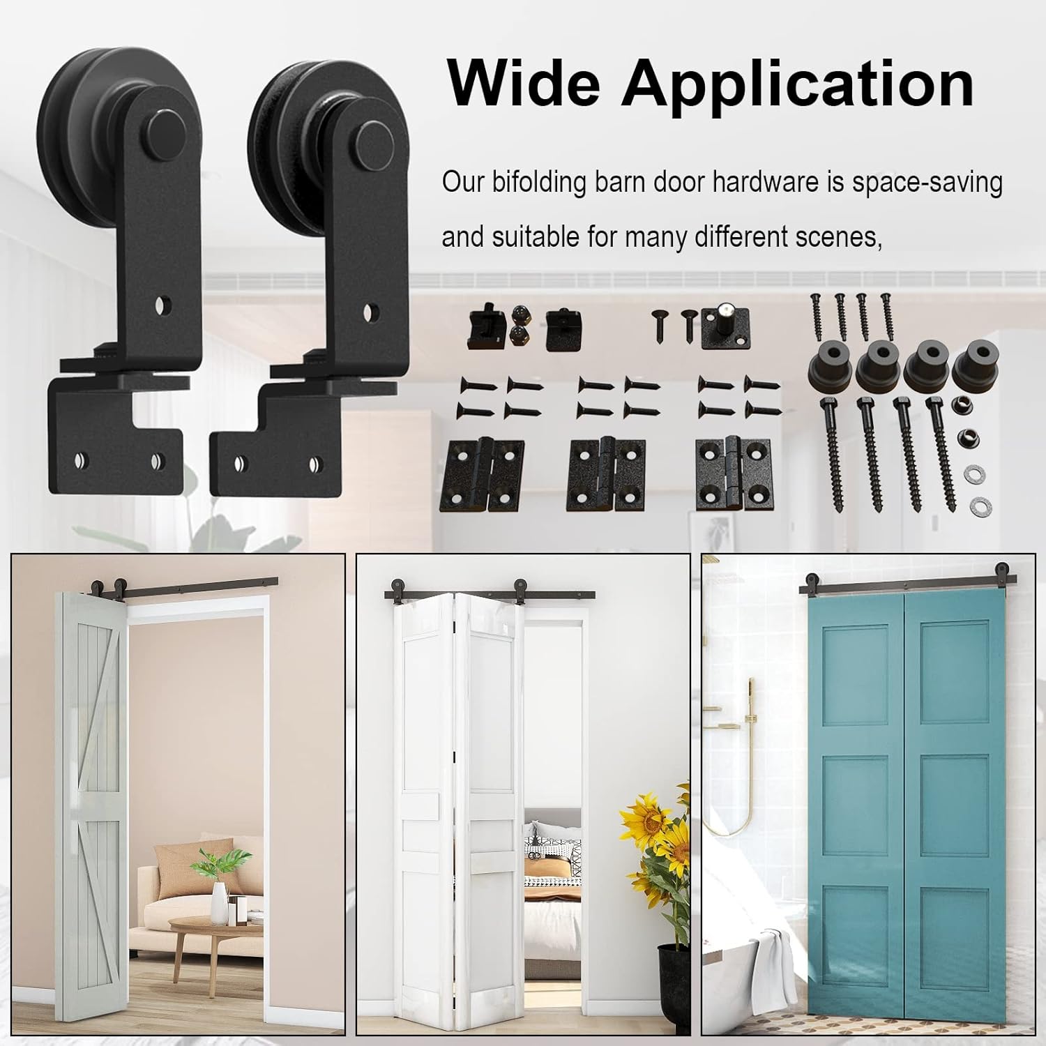 360-Grad-Drehung und zuverlässige Qualität, 1000000 Mal getestet, kann die bifold Scheunentor Hardware-Kit einen flexiblen und leisen Betrieb haben.