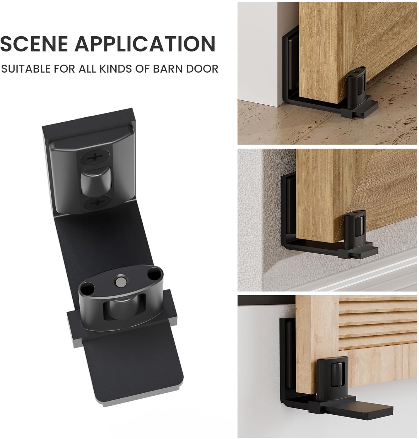 TSMST Schiebetür-Bodenführung,verstellbare Scheunentorführung,schwarz,Scheunentor-Rolle für max.4.8cm dicke Tür,Scheunentor-Bodenrolle,Wandhalterung,Aluminium