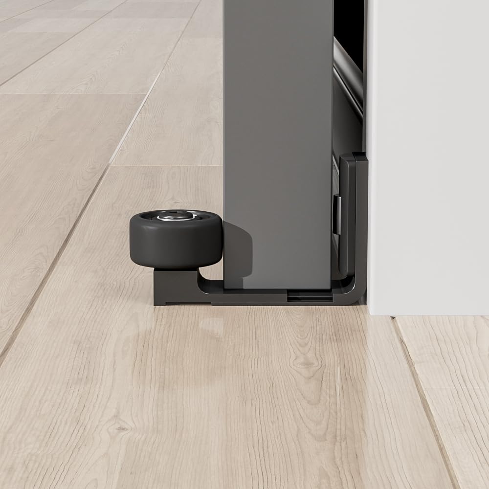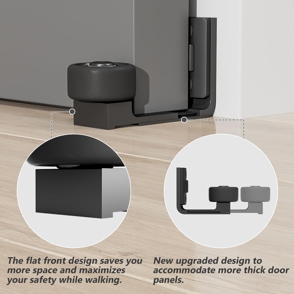 - ✅ 【Design】The adjustable wall mounted floor guide rail can be adjusted according to the thickness of your sliding door, suitable for door panels of 25-60mm. The flat design of the front wheels and the wall fitting design of the rear wheels can save more space for your room. With smooth rollers, you don't need to slot while protecting the door, extending the lifespan of your door.